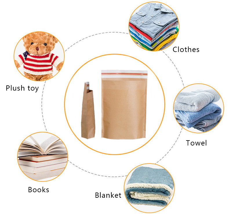 Прилагодените крафт-хартиени кеси се широко применети во повеќе индустрии, вклучувајќи пакување облека, пакување обувки, козметичко пакување и е-трговија испорака. Крафт хартиените кеси за пакување облека помагаат во заштитата на облеката од влага и прашина за време на транспортот. Водоотпорните крафт-хартиени кеси ја подобруваат издржливоста на пакувањето, осигурувајќи дека спакуваните производи пристигнуваат безбедно додека одржуваат професионална презентација за крајните клиенти.